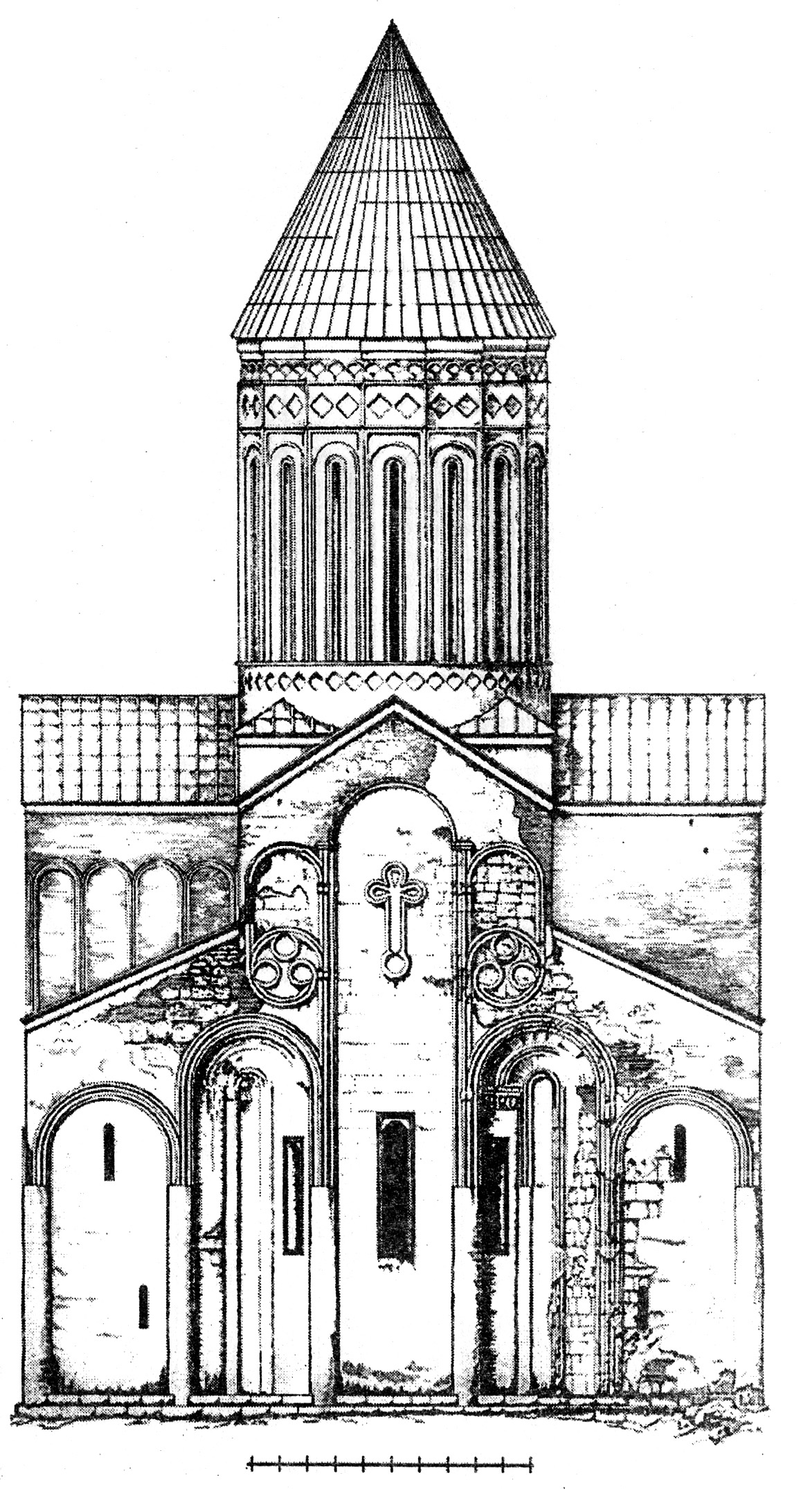 XI საუკუნის 30-იან წლებში, ამ ადგილზე საქართველოში ერთ-ერთი უდიდესი საკათედრო ტაძარი აღიმართა. ტაძრის XI საუკუნეში აგებას ადასტურებს მის აღმოსავლეთ ფასადზე დაცული ორი ლაპიდარული წარწერა: