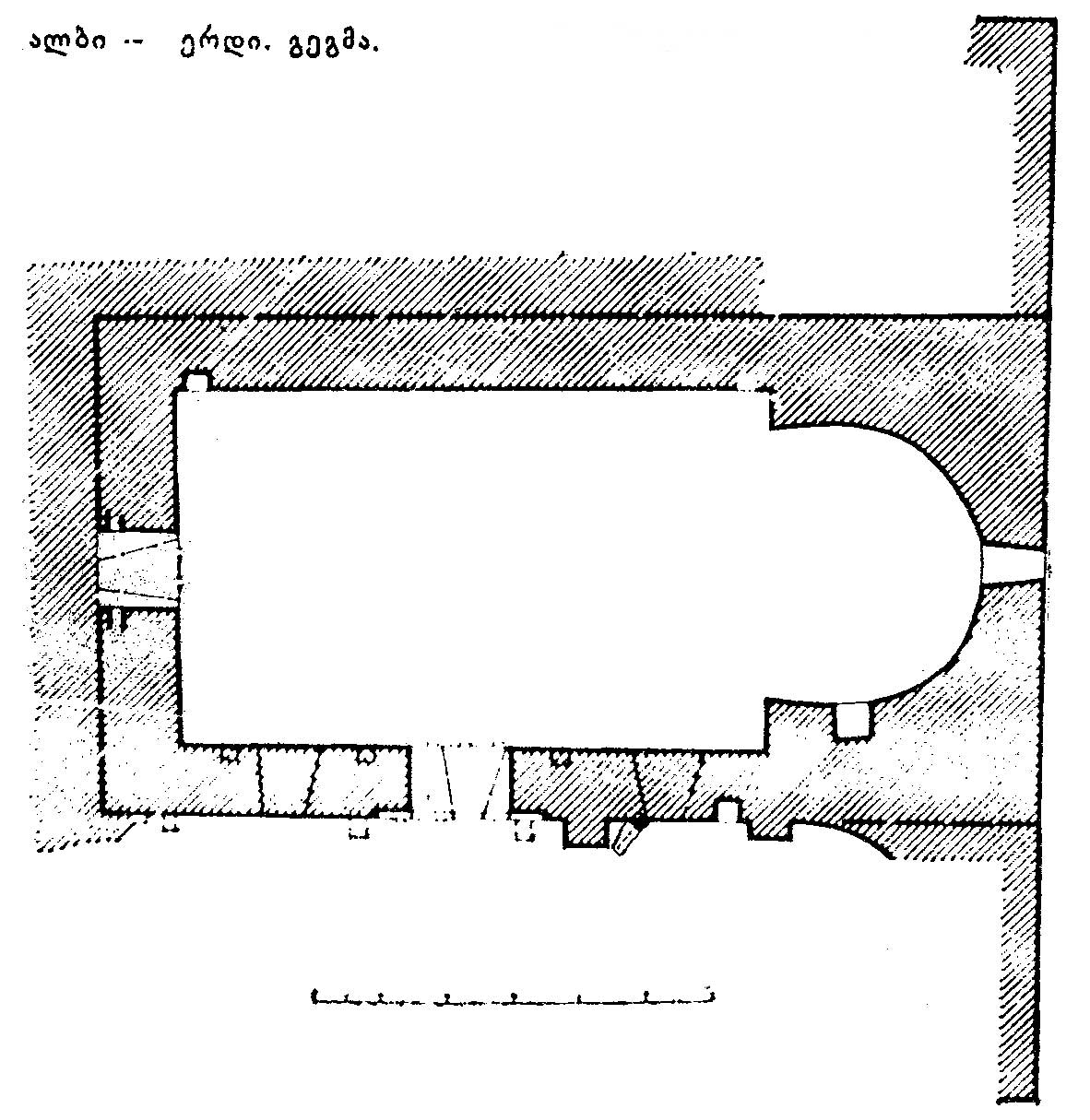 ალბი-ერდის ეკლესია გეგმაში წაგრძელებული (8,75X5,3 მ) სწორკუთხა მოხაზულობისაა. ღრმა ნალისებური ფორმის აფსიდა კედლის სიღრმეშია მოქცეული. აღმოსავლეთისა და დასავლეთის მხარეს შეიმჩნევა მინაშენების ნაშთები. საშენად ძირითადად ფიქალია გამოყენებული, შემკრავად – კირის ხსნარი, ინტერიერი შელესილია. სავარაუდოდ შელესილი იყო საფასადე მხარეც.