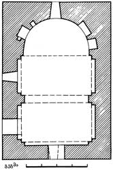 ბ) ეკლესია ჯვარპატიოსანი დარბაზულია (13,6X7,5 მ). აღმოსავლეთ ფასადზე შემორჩენილი ძალზე დაზიანებული წარწერის მიხედვით იგი გივი ამილახვრის დაკვეთით აუგია სახლთუხუცესს პაპუა ქარუმიძეს XVII საუკუნის 70-80 წლებში. ეკლესიაში