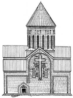 ეკლესია სამსაფეხურიან ცოკოლზე დგას. კედლები მოპირკეთებულია თლილი ქვით და დასრულებულია პროფილირებული ლავგარდნით. ყოველი ფასადი დაყოფილია სამ მონაკვეთად. ყოველ მონაკვეთს შეწყვილებული ლილვი აქვს შემოვლებული. შუა, თაღოვანი გაცილებით ფართო და მაღალია, კარნიზებს მიბჯენილი. განაპირა მონაკვეთები კი სწორკუთხაა. აღმოსავლეთის ფასადის შუა მონაკვეთის ღერძზე განთავსებულ სარკმელს მოჩუქურთმებული საპირე აქვს შემოვლებული. საპირეს ქვემოდან ებმის ფართო არშია, რომელიც ცოკოლს ებჯინება. სარკმლის ზემოთ გამოსახულია მაღალი, მოჩუქურთმებული ჯვარი. ჯვრის ორივე მხარეს, განივი მკლავების ქვემოთ, თითო მცირე ჯვარია, მათ ქვემოთ - თითო მრგვალი სარკმელი. გვერდითი მონაკვეთების სწორკუთხა ჩარჩო სიმაღლით სარკმლისა და ჯვრის თანახვედრის დონეს უსწორდება. ამ მონაკვეთებში შესაბამისად სამკვეთლოსა და სადიაკვნის სწორკუთხა სარკმლებია განთავსებული, რომელთა ზემოთ, მოჩარჩოების ფარგლებს გარეთ, მეორე სართულის ოთახების თითო მრგვალი სარკმელი გამოდის. დასავლეთი ფასადი ზოგადი დანაწევრებით აღმოსავლეთი ფასადის მსგავსია. მაგრამ განაპირა არეები სწორკუთხედის სახისა კი არ არის, არამედ საფეხურებიანი, რომლებშიაც კუთხის ოთახების თაღოვანი სარკმლების ზედა ნახევარია მოქცეული. შუა არეში გამოსახულია უზარმაზარი, მოჩუქურთმებული ჯვარი. იგი ორ, კუდებგადასკვნილ გველეშაპზე დგას. ჯვრის მარჯნივ, განივი მკლავის ქვემოთ, ვაზის რელიეფური გამოსახულებაა, რომლის მარჯნივ, რტოების ქვემოთ, პატარა რელიეფია: ღვთისმშობელი ყრმით. სამხრეთი ფასადი სხვებზე მეტადაა მორთული. ცენტრში დიდი მოჩუქურთმებული ჯვარია კუდებითგადახლართულ ორ გველეშაპზე აღმართული. ფასადის მარცხენა მონაკვეთში მდიდრულად მორთული პორტალია.კარს ლილვები და ჩუქურთმიანი არშია აქვს შემოვლებული. მედალიონებში ანგელოზთა და წმინდანთა გამოსახულებებია. კარის მარცხნივ ცამეტსტრიქონიანი მხედრული სამშენებლო წარწერაა: ”...ელ ყო არაგვის ერისთვის შვილმან მდივანბეგმან პატრონმან ბარძიმ თვისისა სასაფლაოსა ამის ანანურისა, მღთის მშობელისა საფუძველითურთ შენებად, მარაველცა არიან წელნი ცხოვრებისა მისისანი და მე წინამდგომელი თვისი ბაღსარაშვილი ბოქაულთუხუცეს ქაიხოსროვ დამადგინა წმიდასა ამას მონასტერსა ზედან სარქრად. უწყის ღმერთმან, რაც შეძლება მქონდა დღივ და ღამ მოუსვენებლად ვშვებოდი, არ ვეც ძილი თვალთა ჩემთა ვიდრემდის განასრულებდნენ მონასტერსა ამას... ვინც წაიკითხოთ, შენდობას ბრძანებდეთ თქვენცა. ღმერთმა თქვენც შეგინდეს. ქორონიკ