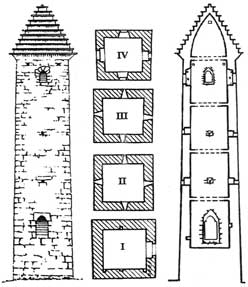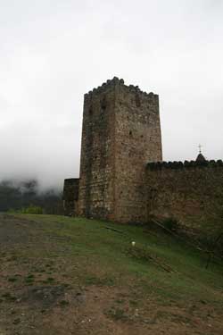 გ) კოშკები - შესასვლელი სამხრეთიდანაა, ოთხსართულიანი სათავდაცვო კოშკის I სართულიდან. კარის წინ ქვის კიბეა. კოშკის ზედა სართულები დაზიანებული და გადაკეთებულია. II სართული საცხოვრებელია. შესასვლელი დასავლეთიდან აქვს.კარი შეისრულთაღოვანია და შიგნიდან სწორკუთხა შეღრმავებაშია ჩასმული. შესასვლელის ორივე მხარეს თითო თახჩაა. ორი თახჩაა აღმოსავლეთ კედელში. მათ შორის ბუხარია. სამ-სამი თახჩაა სამხრეთით და ჩრდილოეთით. მათგან სამხრეთი თახჩები სათოფურებითაა აღჭურვილი. III სართული სათავდაცვოა. შესასვლელი დასავლეთიდანაა - საბრძოლო ბილიკიდან. შემორჩენილია სათოფურეები. IV სართული ქონგურებიანი ბანია, სართულის სამხრეთ კედელში სათოფურების გარდა ერთი სალოდეცაა.