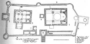 ბ) ანსამბლი გაშენებულია დასავლეთიდან და აღმოსავლეთით დაქანებულ ფერდობზე და მძლავრი გალავნითაა შემოფარგლული.