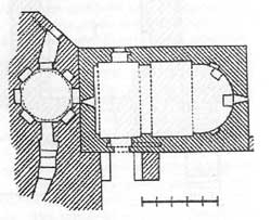 თ) დიდ გუმბათოვან ეკლესიასა და სამრეკლოს შორის მიწისქვეშა რვაკუთხა საკანია (3.5X3.5 მ). იგი დასავლეთით ეკლესია ”მკურნალს” ეკვრის. ის ნაგებია ნატეხი ქვით. შესასვლელი ჩრდილო-აღმოსავლეთიდან აქვს. ქვედა ციხის ეზოდან ვიწრო, ორიიარუსიანი დერეფანი თაღიანი კარით უკავშირდება საკანს. მისი სარკმელი გაერთიანებულია ეკლესიის დასავლეთ კედელში გაჭრილ სარკმელთან. ამ სარკმლის ორივე გვერდზე, ნიშებში მოქცეული პატარა სარკმლები, ამჟამად ამოშენებულია. კარის პირდაპირ ბუხარი იყო, რომელშიც ახლა საკნიდან ზედა ციხის ეზოში ასასვლელია გაჭრილი. საკანი გადახურულია აგურის გუმბათოვანი კამარით.