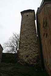 გალავნის ჩრდილო-დასავლეთ კუთხეში დგას პატარა ცილინდრული ფორმის სათავდაცვო ოთხსართულიანი კოშკი. შესასვლელი I სართულზეა, ეზოდან, მეორე და მესამეზე კი საბრძოლო ბილიკიდან. I სართულზე ოთხი სათოფურია, ზედა სართულებზე მათი რაოდენობა მატულობს. IV სართულზე სალოდეები და საზარბაზნეებია. ბუხარი მხოლოდ II და III სართულებზეა, შესასვლელის პირდაპირ.