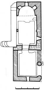 ბ) ეკლესიას დასავლეთით მიშენებული აქვს გეგმით კვადრატული (5,2X4,67 მ) ორსართულიანი კარიბჭე. შესასვლელი პირველ სართულზეა, ჩრდილოეთით. აქ ორმაგი თაღი (აღმოსავლეთისა ამოშენებულია) შუაში ჯვაროვანი გეგმის ბოძს ეყრდნობა, არაწესიერი ფორმის ცილინდრული კამარის სამი საბჯენი თაღი კი კონსოლებს; კედლები შელესილია. ფასადები დასრულებულია ორმაგლილვიანი ლავგარდნით.