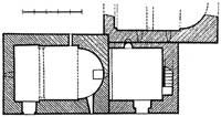 ე) საცხოვრებელი ნაგებობა თავდაპირველი ეკლესიის სამხრეთ–დასავლეთით ოციოდე მეტრის მანძილზეა. იგი მთლიანად დანგრეულია. შემოჩენილია საძირკვლის ნაშთი და ბუხრის ნაწილი. კომპლექსი გარშემორტყმული ყოფილა მრუდხაზოვანი მოხაზულობის გალავნით, რომლის კვალი მხოლოდ აქა–იქ შემორჩა.