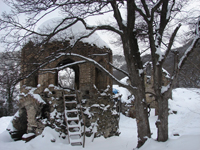 ა) ღვთისმშობლის ეკლესია აგებულია XII ს–ის მეორე ნახევარში 1150-1178 წლებში.. დარბაზულია (14,2X8,2 მ). შესასვლელი დასავლეთიდან აქვს. შიდა სივრცე სამკაოდ გაშლილია, რასაც კიდევ უფრო შლის საკურთხევლის წინ არსებული ბემა. კამარის საბჯენი თაღი პილასტრებს ეყრდნობა. განივ კედლებში თითო სარკმელია, ჩრდილოეთისაში – ორი. ეკლესია აგებისთანავე მოუხატავთ. მ ო ხ ა ტ უ ლ ო ბ ი ს ნაშთები შემორჩენილია საკურთხეველსა და დასავლეთ კედელზე. მოხატულობის კოლორიტი მოწითალო–აგურისფერია. საკურთხველეში მხატვრობა სამ რეგისტრად იყოფა. კონქის კომპოზიცია არ შემორჩა, შუა რეგისტრში მოციქულთა დიდი ზომის წელსზედა გამოსახულებებია, ქვედა რეგისტრი კი ეკლესიის მამათა ფიგურებს უკავია. დასავლეთ კედლელზე გაირჩევა წმინდა მეომრის ფიგურა შუბით და ფარით. საკურთხევლის სარკმელში დარჩენილია მცირე ორნამენტი, რომლის კოლორიტიც ყვითელი ოქრო, მწვანე, ცისფერი და ლურჯი საღებავებისგან შედგება.