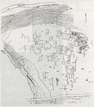ბ) ნაგებობები სხვადასხვა დროის და დანიშნულებისაა. აბანო, ზღურბლიანი ნაგებობა (სასახლე), ერთ და ორ-სენაკიანი ნაგებობები, მარანი და საკულტო ნამარხები ადრინდელია.