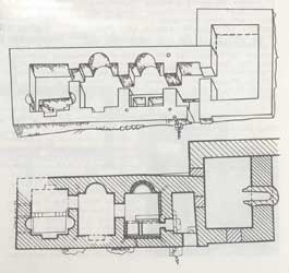 II. დასავლეთის სენაკის (7X6,75 მ) ჩრდილო კედლის ცენტრში გაჭრილია კარი, რომლის ზღურბლი მასიური ქვიშაქვის დიდი ფილაქვაა. ზღურბლში ამოკვეთილია საფეხური, რომლის კუთხეებში ამოჭრილია კარის ღერძის ჩასამაგრებელი ფოსოები. შემორჩენილია აგრეთვე კარის ორივე ამყოლი, არქიტრავის დიდი ფრაგმენტი, ქვიშაქვის სვეტის ბაზისი და კორინთული სტილის სვეტითავი აკანთის ფურცლების მოტივისა.