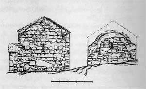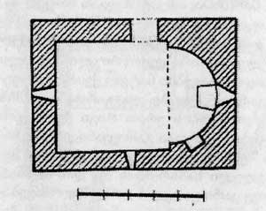 ბ) მცირე ეკლესია (8X5,9 მ), ნაგებია რიყისა და ნატეხი ქვის ირეგულარული წყობით. შესასვლელი ჩრდილოეთიდანაა, ნავის ჩრდილო-აღმოსავლეთ კუთხესთან. ნახევარწრიულ აფსიდში, სწორკუთხა სარკმლის ქვემოთ კედელზე მიშენებულია ტრაპეზი. აფისიდის სამხრეთ ნახევარში მცირე სწორკუთხა ნიშია. სამხრეთ და დასავლეთ კედლებში თითო სარკმელია. კედლებზე შიგნით და გარედან ბათქაშის კვალია.