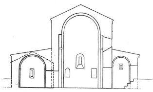 ეკლესიის აღმოსავლეთ ფასადზე, ძირითადი ნავისა და ჩრდილო მინაშენის კედლების წყობა გადაუბმელია. მინაშენზე ფრონტონის კვალიც განირჩევა. ფრონტონი კი მხოლოდ დამოუკიდებელ ნაგებობას შეიძლებოდა ჰქონოდა. ამასთანავე, მიუხედავად იმისა, რომ ორივეზე თითქმის ერთნაირი სამშენებლო მასალაა გამოყენებული, მათი კედლების წყობის ზოგადი იერი მაინც განსხვავებულ სურათს გვაძლევს. აშკარაა, რომ ისინი ერთი ოსტატის მიერ არ არის აშენებული. გვიან ეკვდერის კუთხეები აუმაღლებიათ, შენობა ერთქანობა სახურავით გადაუხურავთ და ასე დაუკავშირებიათ ძირითადი ნავისათვის.
