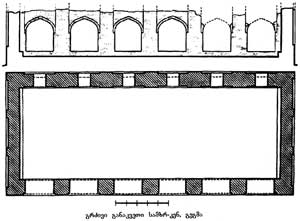 გ. ჩუბინაშვილი აღნიშნავს, რომ ეს საზეიმო სააუდიენციო სასახლე უნდა ყოფილიყო. მართლაც, ჩვეულებრივი საცხოვრებელი ბინის ამას არაფერი აქვს: ეს ერთსართულიანი შენობაა, რომელიც ერთადერთი ვრცელი სწორკუთხა დარბაზისაგან შედგება. დამხმარე სამეურნეო სადგომები ცალკე შენობაში იყო, სადღაც მახლობლად, თვით სასახლე კი ყოველგვარ დანაყოფთა და დანამატთა გარეშეა. ალბანელი აღნიშნავს: „ცხრაკარას და იოანნეს ტაძარს შუა ადგილში პატარ–პატარ აშენობების ნანგრევები ჩანან, ამავე ადგილში, უფრო დიდი შენობის ახლო, ქვევრებსაც ვპოულობთ“.