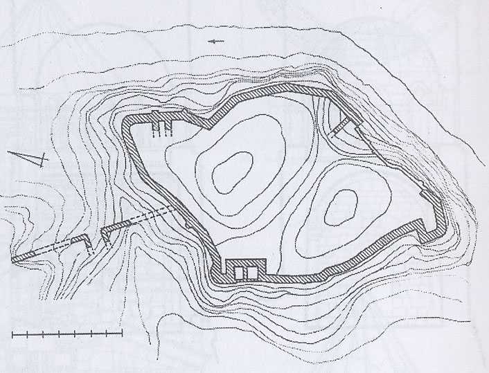 1988-89 წლებში არქეოლოგიური კვლევის ცენტრის აღმოსავლეთ საქართველოს მთიანეთის არქეოლოგიური ექსპედიციის ხევის რაზმმა (ხელმძღვანელი დ. მინდორაშვილი), შეისწავლა ციხის დასავლეთ ფერდობის ძირი 1-დან 5 მ-მდე სიღრმეზე. ცენტრალურ ნაწილში დადასტურდა განვითარებული და გვიანდელი შუა საუკუნეების კერამიკული მასალა. ჩრდილოეთით კი, იქ, სადაც ადრე ციხის ჩრდილოეთის კარიბჭე უნდა ყოფილიყო, იზოდომური წყობით ნაგები კედლის (V საკუკუნის მიწურული – VI საკუნის დასაწყისი) ქვეშ აღმოჩნდა მშრალი წყობით ნაგები კედელი (სისქე 6 მ), რომელიც სავარაუდოდ ძვ.წ. II საუკუნით თარიღდება. კედლის პერანგად გამოყენებულია ქვიშაქვის დაუმუშავებელი დიდი ლოდები. პერანგებს შორის სივრცე პატარა ქვებითაა ამოვსებული.