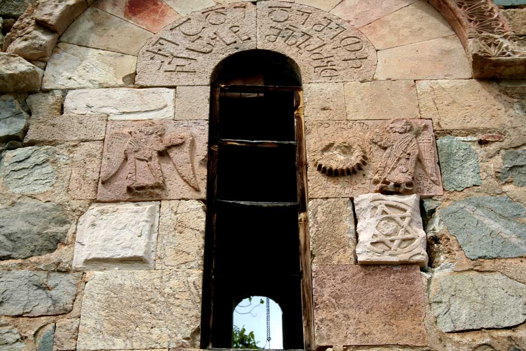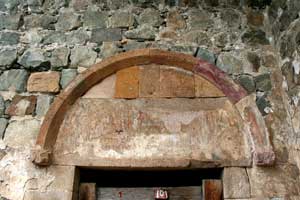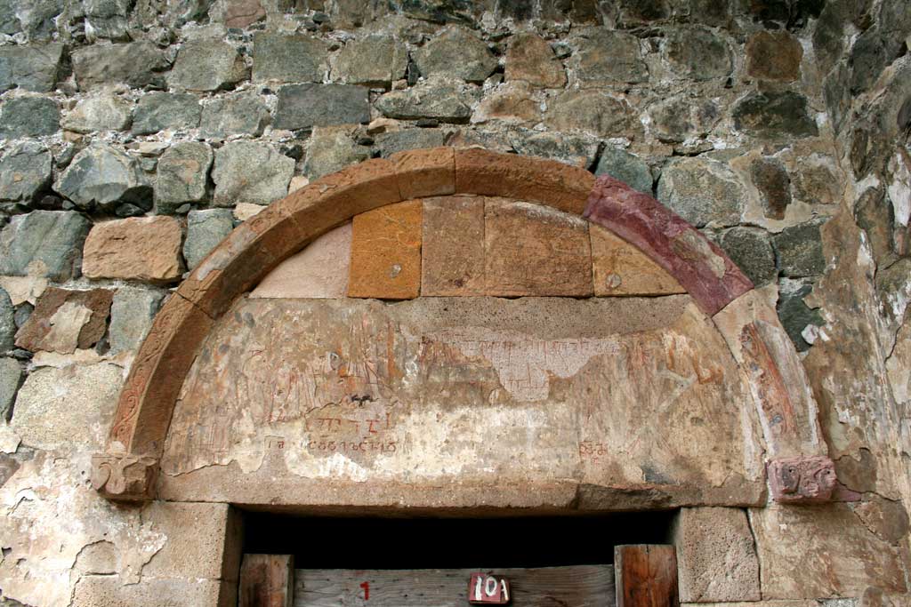 სამხრეთ-დასავლეთ სათავსიდან ეკლესიაში შემავალ კარს უზარმაზარი ქვის არქიტავრი აქვს. მასზე გამოყვანილია ნატიფ კონსოლებზე დამდგარი დიდი ნახევარწრიული თავსართი, რომელსაც მსუბუქად ნაკვეთი მცენარეული ორნამენტი გაუყვება. მომცრო აფსიდი სამხრეთ-დასავლეთ სათავსის აღმოსავლეთ ბოლოში ეკლესიის თანადროული არ არის, ის მოგვიანებით (ალბათ XI საუკუნეში) არის გამოღებული. აფსიდი მთლიანად თლილი ქვითაა მოპირკეთებული, აქვს სხვადასხვა რთული კონფიგურაციის შვიდი ქვით ძალიან სუფთად გამოყვანილი კონქი. აფსიდის გამოღებისას, როგორც ჩანს, დაზიანდა წყობა მის ზემოთ და მარცხნივ. ის თავისივე ქვებით აღუდგენიათ. ამ განახლებულ წყობასა და თვით აბსიდში ჩასმულია რელიეფები, რომლებიც თავიდან სხვაგან უნდა ყოფილიყო მოთავსებული. ერთ მათგანზე ამჟამად მთლიანად გადარეცხილ ფიგურას (ალბათ წმ. სტეფანესი) აქვს წარწერა: