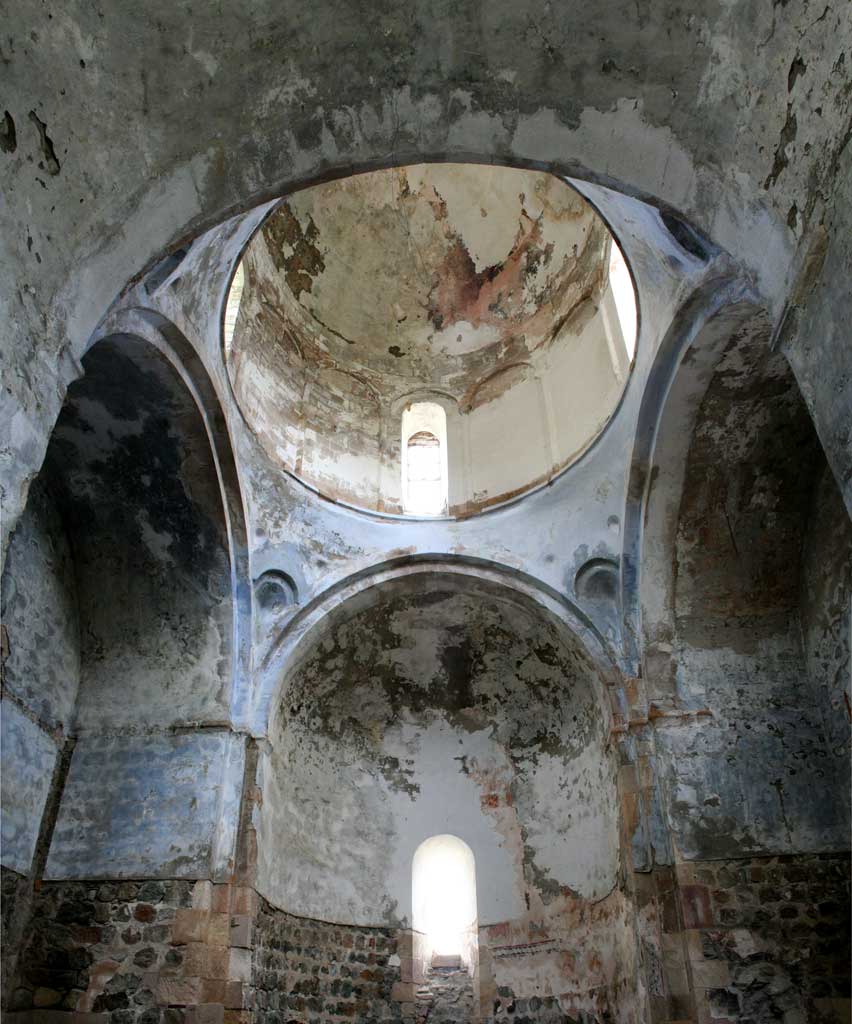 გუმბათქვეშა თაღები ეყრდნობა სადა პროფილის (თარო-ცერობი) იმპოსტებს. მათ ქვემოთ კედლის კუთხეებზე პილასტრები არ არის. დასავლეთის მკლავს შუაზე აქვს ერთი საბჯენი თაღი (ის ახლა თურქების მიერ ჩაშენებულ კედელშია ჩამალული), რომელიც კედელზე შეკიდულ წაკვეთილ პილასტერბს ეყრდნობა. ამ პილასტრების კაპიტელები შედარებით რთული პროფილისაა (თარო-ცერობი-თარო-ცერობი).