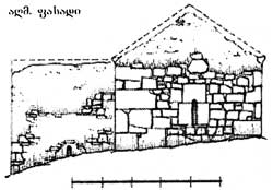 ეზოს შუა ნაწილი ნანგრევებია ნატეხი ქვით ნაგები, გეგმით სწორკუთხა (9,2X6,3 მ) ნაგებობისა, რომლის ერთ-ერთ (სამხრეთის) კედელში შეისრულთაღოვანი შესასვლელია გაჭრილი.