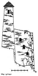 გ) სადროშე კოშკი უშუალოდ საბრძანისზეა მიდგმული და ოთხკუთხა პრიზმის ფორმის ყრუ ნაგებობას წარმოადგენს. მის აღმოსავლ;ეთ წახნაგში სასანთლე ნიშია. ნაგებობა გადახურულია პირამიდისებრი ექვსსაფეხურიანი სახურავით.