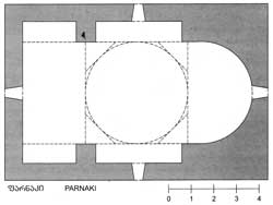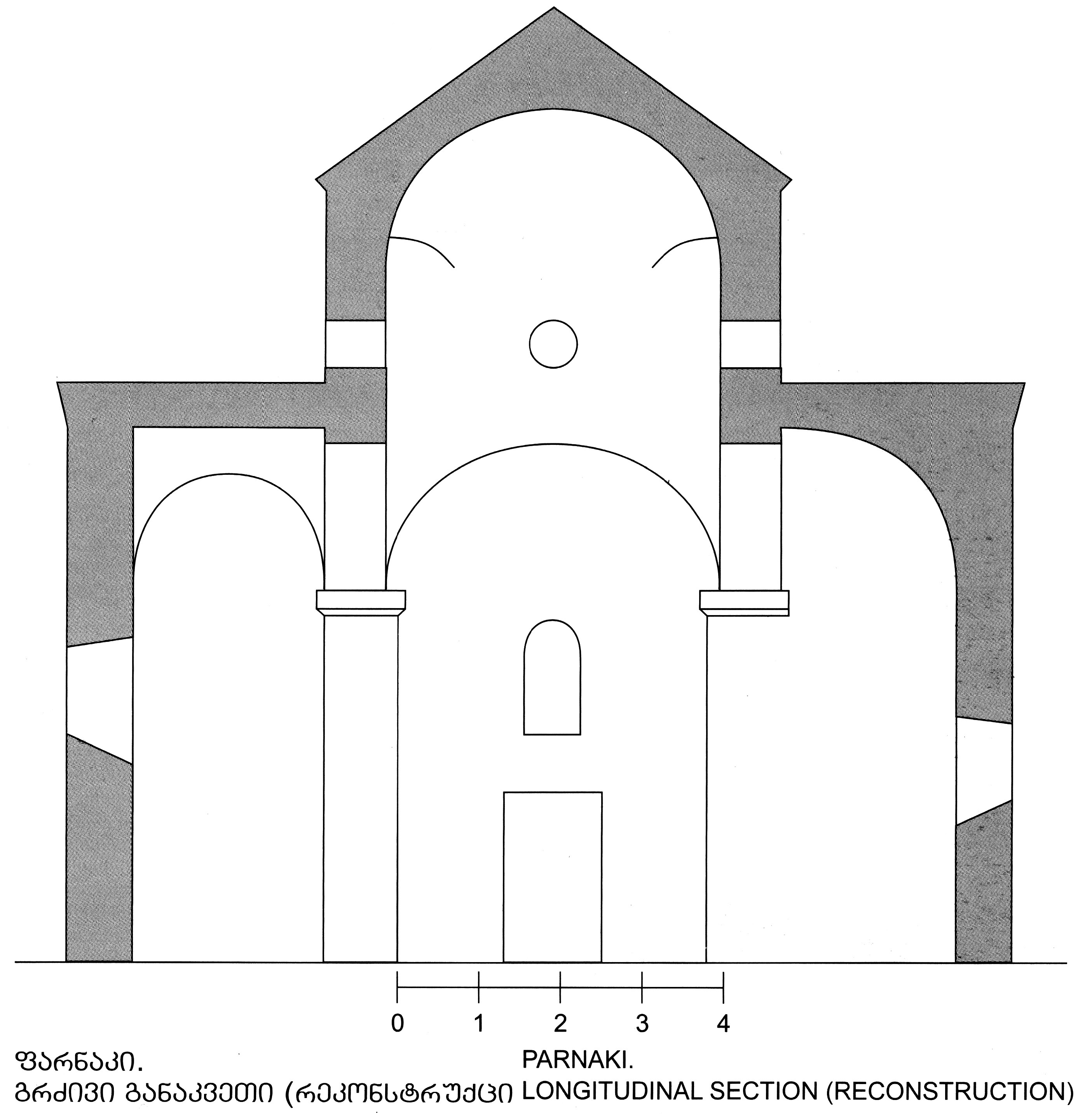 ბ) ფარნაკის ეკლესია ა. კალგინის ანაზომებს მიხედვით კუპენჰალეს ტიპის მარტივი ვარიანტია: დასავლეთ-აღმოსავლეთ ღერძზე წაგრძელებული, ის გარე სწორკუთხედში თავსდება; გუმბათი აღმოსავლეთ აფსიდის კუთხეებს ეყრდნობა, დასავლეთით – გრძივი კედლებიდან გამოსულ შვერილთა ერთ წყვილს; ე. თაყაიშვილი აღნიშნავს გუმბათის ყელის რამდენიმე თავისებურებას: ეს არის გუმბათის ყელის ოთხწახნაგა ფორმა; აგრეთვე აფრების უქონლობა და გუმბათში ოთხი, თანაც წრიული ფორმის სარკმლის გაჭრა. ეკლესია აგებული ყოფილა ტლანქად ნათალი წითელი ქვებით.