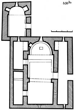ბ) ეკლესიის თანადროული ორი მინაშენია. ორივე მინაშენი აღმოსავლეთით ეკლესიის აფსიდის კედლებში ღრმა ნიშით არის შეჭრილი. ეკლესიის აღმოსავლეთ კედლის ჩრდილოეთ კუთხეში გვიანდელი ფეოდალურ ხანაში მიუშენებიათ დარბაზული ეკლესია, რომელსაც კარი სამხრეთითა აქვს, სარკმლები აღმოსავლეთითა და სამხრეთით.