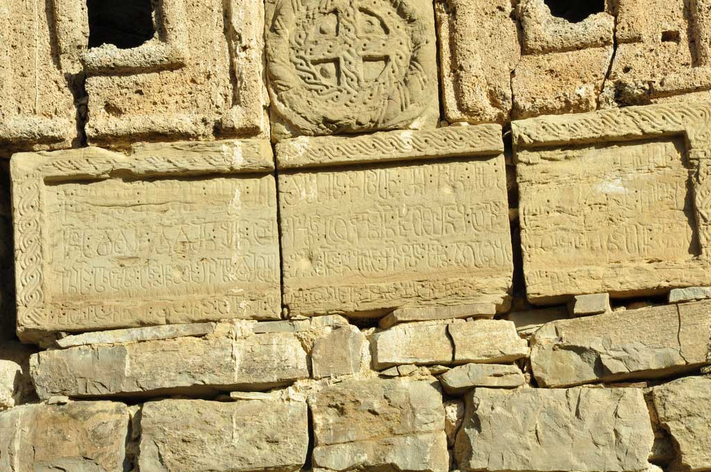 სარკმლებს ქვევით, ქვიშაქვის სამ ფილაზე, არის ოდნავ დაზიანებული ასომთავრული წარწერა: “ქ. სახელითა მამისა და ძისა და სულისა წმიდისა (აქ სიტყვა არ იკითხება), დედამან დიდმან შნ ცოველის ასულმან ხათუნაყ აღვაშენე (აქ ისევ არ იკითხება ორი-სამი სიტყვა) წმიდისა ღვთისმშობელისა სალოცველად სულთა ჩუენთათვის, შვილთა და მომავალთა შვილებად ჩუენთა (აქ ისევ არ იკითხება სიტყვები) ეკლესია (აქაც აკლია ბოლო სიტყვა)”.
