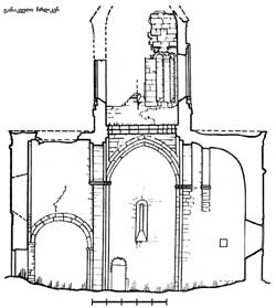მოგვიანებით (XV საუკუნეში) ეკლესია შეუკეთებიათ და მორთულობის აღდგენილი ნაწილები, არსებულ პროფილთან მისადაგებით, განსხვავებული მასალით შეუვსიათ. აღმოსავლეთის ფასადის შუა სარკმლის ქვემოთა ნაწილის მოპირკეთება, დასავლეთის ფასადზე დეკორატიული ჯვრის მოჩუქურთმებული ძირი და მისი ქვემოთ წყობაში ჩასმული სამი სწორკუთხოვანი ფილა მოჩუქურთმებული ჩარჩოთი და ასომთავრული წარწერით გვიანდელი შეკეთების შედეგია. შენობას აგვირგვინებს გუმბათის მაღალი ყელი, რომელიც ოდესღაც დასრულებული იყო კარვისებრი სახურავით. გუმბათის ყელში გაჭრილი იყო პროფილირებული საპირეებში ჩასმული თორმეტი სარკმელი. გუმბათს გარს ევლება ნახევარსვეტებზე დაყრდნობილი თაღედის უწყვეტი რიგი. კვადრატულ ბაზისზე დაყრდნობილ ყოველ კონას, რომელიც სამი ნახევარსვეტისაგან შედგება, თაღების საფუძველთან, შემოჭრილი აქვს გლუვი სარტყელი, რომლის ქვეშ, თითოეული ნახევარსვეტის ბოლოში, თითო ბურთულაა. მსგავსი ბურთულებია გამოყოფილი ნახევარსვეტების ძირებში. გუმბათის ყელის თაღედი დგას მრგვალ პროფილირებულ სარტყელზე, ყელი დასრულებულია რთული პროფილის ლავგარდნით (შემორჩენილია რამდენიმე ქვა). ეკლესიის ჩრდილოეთ მინაშენს (6,6 X 3,7 მ) შესასვლელი დასავლეთიდან აქვს. აღმოსავლეთით ღრმა აფსიდის ღეძზე, ვიწრო სარკმელია, მსგავსი სარკმელია დასავლეთითაც. მინაშენი გადახურულია კვერცხისებრი ფორმის კამარით.