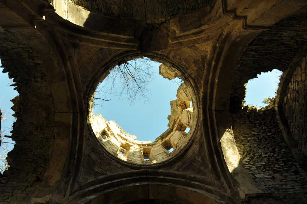 ეკლესიის შუაში, საკურთხევლის შვერილებსა და დასავლეთით თავისუფლად მდგომ ორ ბურჯზე აღმართული გუმბათი ორსაფეხურიან, ოდნავ შეისრულ საბჯენ თაღებს ეყრდნობა. გუმბათქვეშა კვადრატიდან გუმბათის წრიულ საფუძველზე გადასვლა აფრების საშუალებით ხდება. გუმბათის საფუძველს შემოუყვება მაღალი სარტყელი, რომლის პროფილს თარო და ლილვი შეადგანს. მსგავსი ლილვი გასდევს გუმბათქვეშა თაღებსაც. თაღების წვეროსთან იგი ეხება სარტყლის ლილვს, მაგრამ მას არ ებმის. გუმბათის ყელში თორმეტი სარკმელია. ეკლესია შიგნით შელესილია.