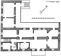 I სართული სამეურნეო დანიშნულების ნახევრად სარდაფია, ორივე ფრთაში მარანია, ფრთების შეერთების ადგილას კი – ორი პატარა ოთახი. ოთახები ერთმანეთისგან გამიჯნულია კედლით (სისქე 2,3 მ), იგი II სართულზე ასასვლელი კიბის საყრენია. მოგვიანებით კედლები გაუნგრევიათ და ოთახები ერთმანეთთან დაუკავშირებიათ. მათგან სამხრეთ ოთახს, დამოუკიდებელი შესასვლელი და ერთი ფანჯარა აქვს დასავლეთიდან. ჩრდილოეთით მდებარე ოთახი გამავალია, განათებულია ერთი ფანჯრით (დასავლეთით) და მარნებს ერთმანეთთან აკავშირებს. სამხრეთის ფრთაში მდებარე მარანი უფრო ფართო და გრძელია, გრძივი ღერძის გასწვრივ განლაგებული ხუთი კვადრატული ბურჯითა და მათზე დაყრდნობილი ნახევარწრიული თაღებით იგი ორ ნაწილადაა გაყოფილი. ჩრდილოეთ ნაწილში, რომლის იატაკი 0,7 მ–ით მაღლაა, საწნახელია, სამხრეთ ნაწილში კი ქვევრებია ჩაყრილი. ჩრდილოეთ ნაწილის აღმოსავლეთ და ჩრდილო კედლები ყრუა. დასავლეთ კედელში განიერი სწორკუთხა კარია, რომელიც ფრთების შეერთების კუთხეში მდებარე ერთ–ერთ (ჩრდილოეთ) ოთახში გადის. მარნის სამხრეთ ნაწილის სამხრეთ კედელში განიერი სწორკუთხა კარია, რომლის ორივე მხარეს ორ–ორი ფანჯარაა. აღმოსავლეთ კედელში მცირე ზომის თახჩაა, დასავლეთ კედელში კი ერთი თახჩა და კედლის სისქეში მოწყობილი კიბის შესასვლელია. კიბე მარანს II სართულთან აკავშირებს.