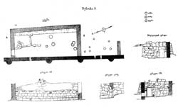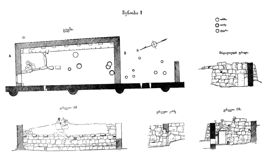ოთახის სხვადასხვა ადგილას გრუნტში ჩაშენებული აღმოჩნდა ერთი ორმო და რამდენიმე თონე.