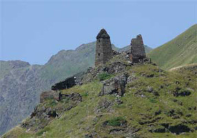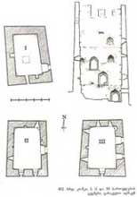 ბ) სამი კოშკი (დაუნგრეველს ეწოდება “ზურაბის კოშკი”).