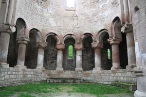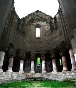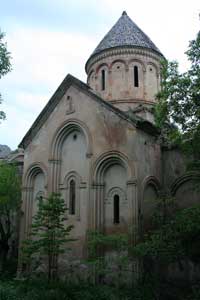 აფსიდის ირგვლივ გალერეაა. ეს გალერეა არ არის ტიპიური, იგი ტაძრის გადაკეთების შედეგია. თაღედი ამ ეკლესიის ფრაგმენტია, რომელიც VII საუკუნის 30–იან წლებში იყო აშენებული. გალერეა გადახურულია ცილინდრული კამარით და ნათდება სამი სარკმელით. გალერეის უკან, პირველ სართულზე, სამხრეთიდან და ჩრდილოეთიდან განლაგებულია სადიაკვნე და სამკვეთლო. ვინაიდან იყო გამოყენებული შედარებით ძველი ნაწილი, ისინი უჩვეულოდ გრძელებია და აქვთ არატიპიური გეგმა. გეგმით ორივე ერთნაირია – თავში კვადრატული, შემდეგ კი გრძელი, აფსიდალური დაბოლოებით. თითოეულს აქვს შესასვლელი გალერეის მხრიდან. გრძელი და განიერი დასავლეთის მკლავი გადახურულია კამარით, რომელიც ეყრდნობა თაღებ