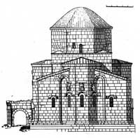 ბ) მთავარი ტაძარი ჯვარ–გუმბათოვანი ნაგებობაა (20,2X16,5მ სიმაღლე–25 მ), თარიღდება 584–604 წწ–ებით. ფასადები და შიდა პირი ამოყვანილია ღია ვარდისფერი, ზოგან კი შედარებით მუქი კარგად გათლილი ქვიშაქვის მოზრდილი კვადრებით. კედლის წყობის ჰორიზონტალური ნაკერებისსწორხაზოვნება ყველგან მკაცრადაა დაცული.