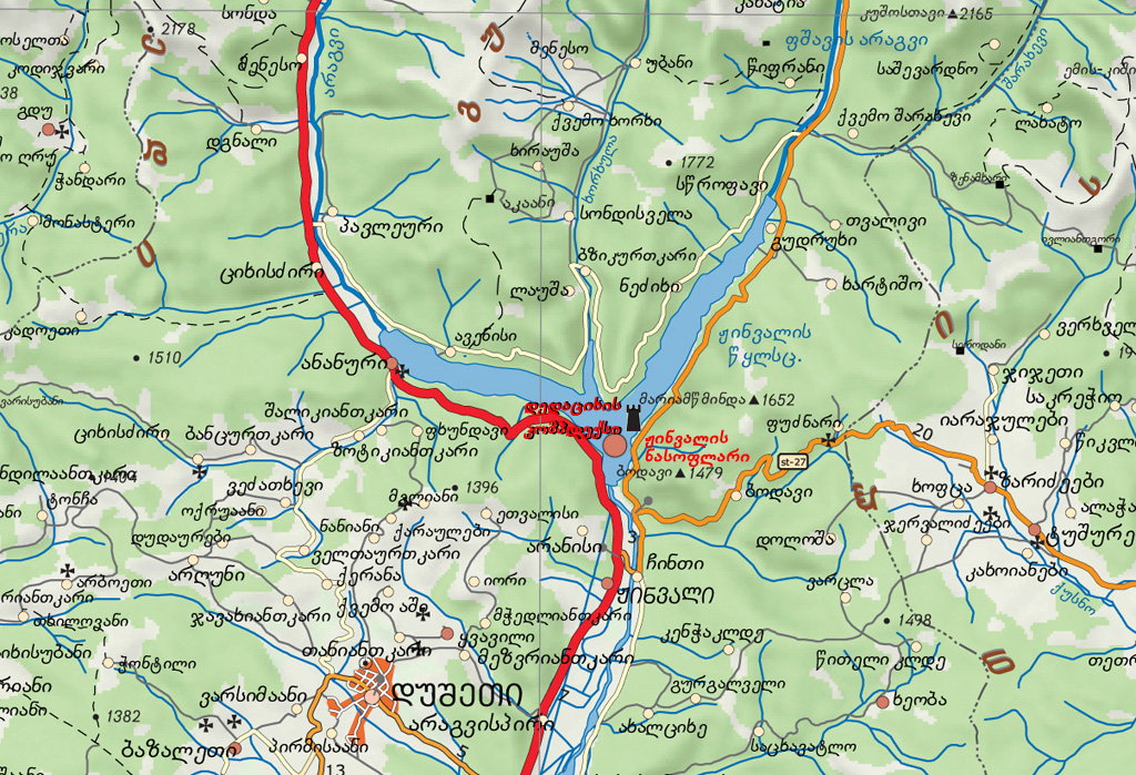 კომპლექსი ამჟამად დაფარულია წყლით - 1985 წლიდან მოქცეულია ჟინვალჰესის წყალსაცავით დატბორილ ზონაში.