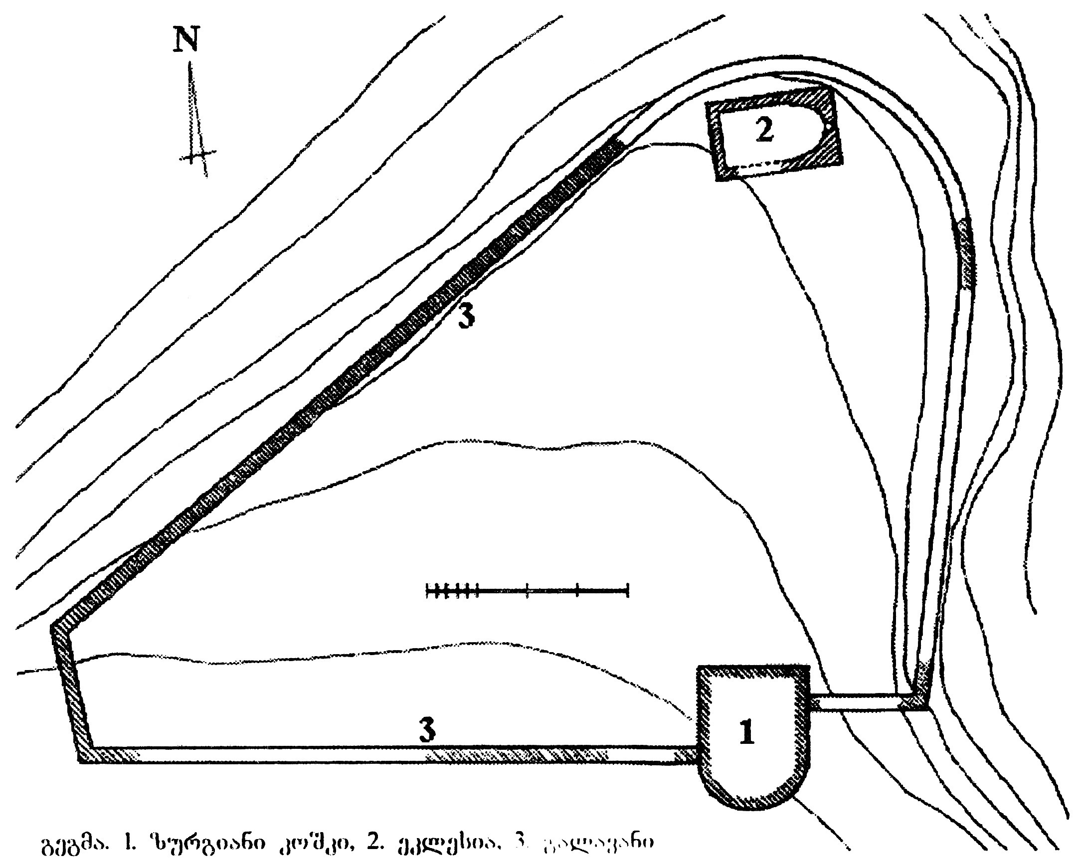 ზურგიანი კოშკი, ეკლესია, მარანი, თონე, ნაგებობანი.