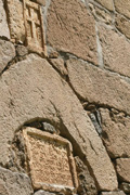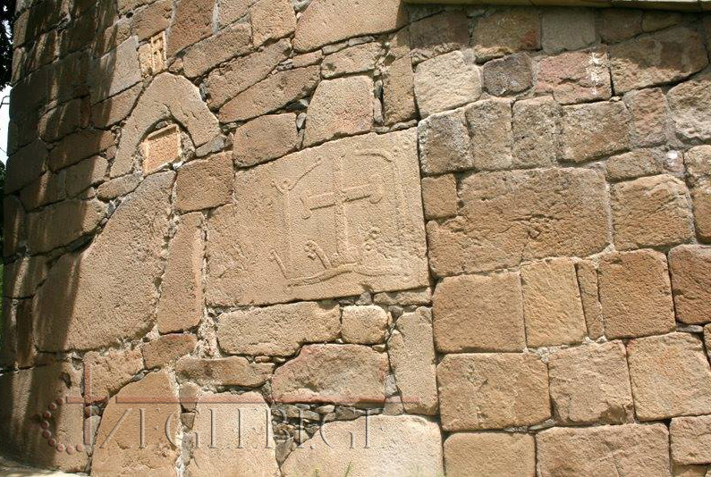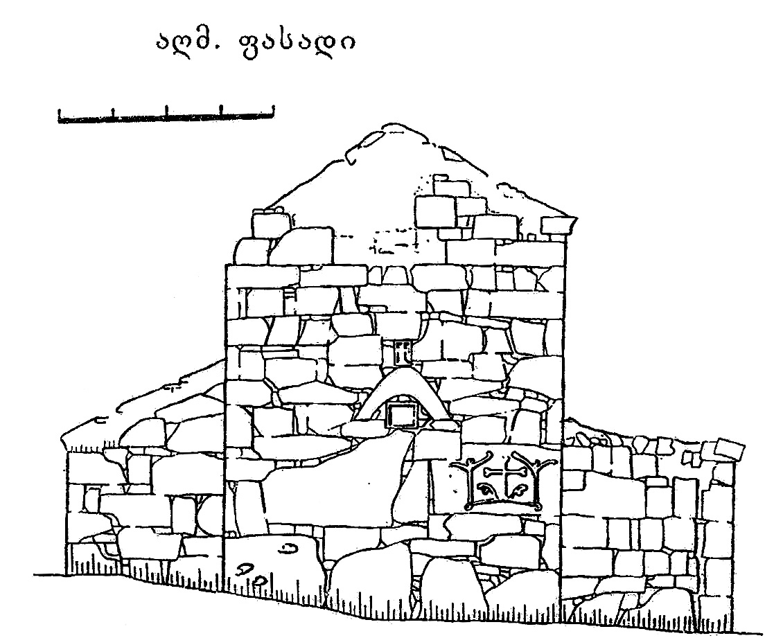 აღმოსავლეთი ფასადის კედელს განსაკუთრებულ მხატვრულ ელფერს ანიჭებს მოსაპირკეთებელი ქვების წყობა. აქ სარკმლის სათაურზე გამოსახულია სამი რელიეფური ჯვარი. დასავლეთ ფასადის ცენტრში ჩადგმულია ღია ყვითელი ფერის ოთკუთხა ქვა, რომელსაც შემოვლებული აქვს ამობურცული განიერი ლილვი. ქვაზე შვიდსტრიქონიანი ასომთავრული სამშენებლო წარწერაა, რომელშიც გარდა ეკლესიის აშენების თარიღისა და აღმშენებლის ასად სანივაჯის ძისა ნახსენები არიან გიორგი მეფე და მელქისედეკ კათოლიკოსი, სოფრონ ბედიელი მთავარეპისკოპოსი. წარწერიანი ქვის გასწრივ, ვიწრო სწორკუთხა ყვითელ ქვაზე ამოკვეთილია შეღრმავებული ჯვარი. ასეთივე ჯვარია ფასადის ქვედა ნაწილის მარჯვენა კუთხეში, მოზრდილ ქვაზე. ლავგარდანი შედგენილი იყო ირიბად ჩაკვეთილი სიბრტყისა და ვიწრო თაროსგან.