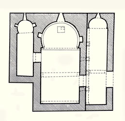 გ) ეგვტერი ეკლესიის სამხრეთ კედლის მთელ სიგრძეზე მოგვიანებით მიუშენებიათ. თაღოვანი შესასვლელი სამხრეთი კედლის დასავლეთ ნაწილშია, ეკლესიის კარის პირდაპირ. აფსიდი ნახევრადწრიულია. ეგვტერის კამარის ქუსლს ქმნის ეკლესიის სამხრეთი კედლის გასწრივ აგებული ქვიშაქვის დაბალი ხუთმალიანი თაღედი.
