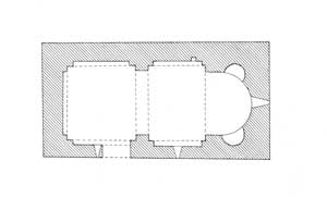 ტაძრის ინტერიერი გვიანი ნალესობის სქელი ფენითაა დაფარული, რაც გარკვეულწილად ართულებს მისი შიდა სივრცის საერთო მხატვრული იერის თავდაპირველი სახით აღქმას; უცნობი რჩება შიდა პერანგის წყობის ხასიათიც.