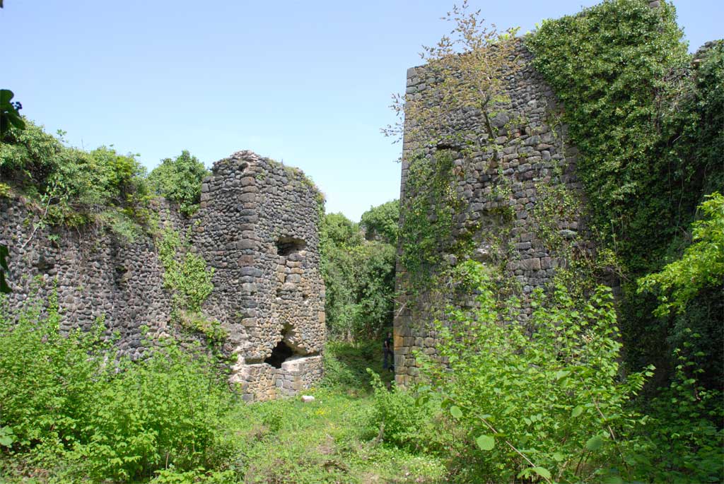 კოშკის პირველი სართული სავარაუდოდ, რომ ჩვეულებისამებრ დამხმარე ფუნქციებს ასრულებდა. ამჟამად კი მთლიანად მიწითაა ამოვსებული. მეორე სართულზე მოთავსებულია დიდი დარბაზი. დარბაზს დასავლეთით დიდი ზომის სწორკუთხა სარკმელი აქვს, რომელიც მაღლაა ,,აშვერილი”. აღმოსავლეთის კოშკს ნახევარწრიული მინაშენი აქვს. მინაშენის სამხრეთ კედელში ორი ღრმა თაღოვანი ნიშია მოთავსებული. გ) აღმოსავლეთის კოშკის სიმაღლე დიდად სჭარბობს არსებულ ზღუდეს. აღმოსავლეთის კოშკის მეოთხე სართული ბანი იყო. ბანის კედლების სიმაღლე უდრის 1,5 მ-ს. ასევე აღსანიშნავია ისიც, რომ კედლის ჩრდილოეთ მონაკვეთში სამი დიდი სათვალთვალო სარკმელია, რომელთა ზომები იცვლება 0,9-0,6 მ-ს შორის.