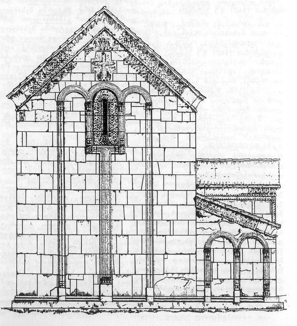 ეკლესიის ფასადები მდიდრულადაა მორთული. დეკორატიული მიზნით ფირუზისფერი ქვაცაა განოყენებული ფრიზისთვის. ეკლესიის სამხრეთ ფასადზე მიდგმულია კარიბჭე. ეს ფასადი მკვეთრად ასიმეტრიულია. მთელ ნაგებობას ჩუქურთმიანი ფრიზით შემკული ორნამენტირებული ლავგარდანი აქვს შემოვლებული. სახურავი ორფერდაა. ეკლესიას სამხრეთიდან ეგვტერი აქვს მიშენებული. იგი სამნაწილად დაყოფილი ვიწრო გრძელი სათავსია საკმაოდ ამაღლებული შესასვლელით. გადახურილია ცილინდრული კამარით. ეგვტერის აღმოსავლეთ ნაწილი აფსიდიანი სამლოცველოა.
