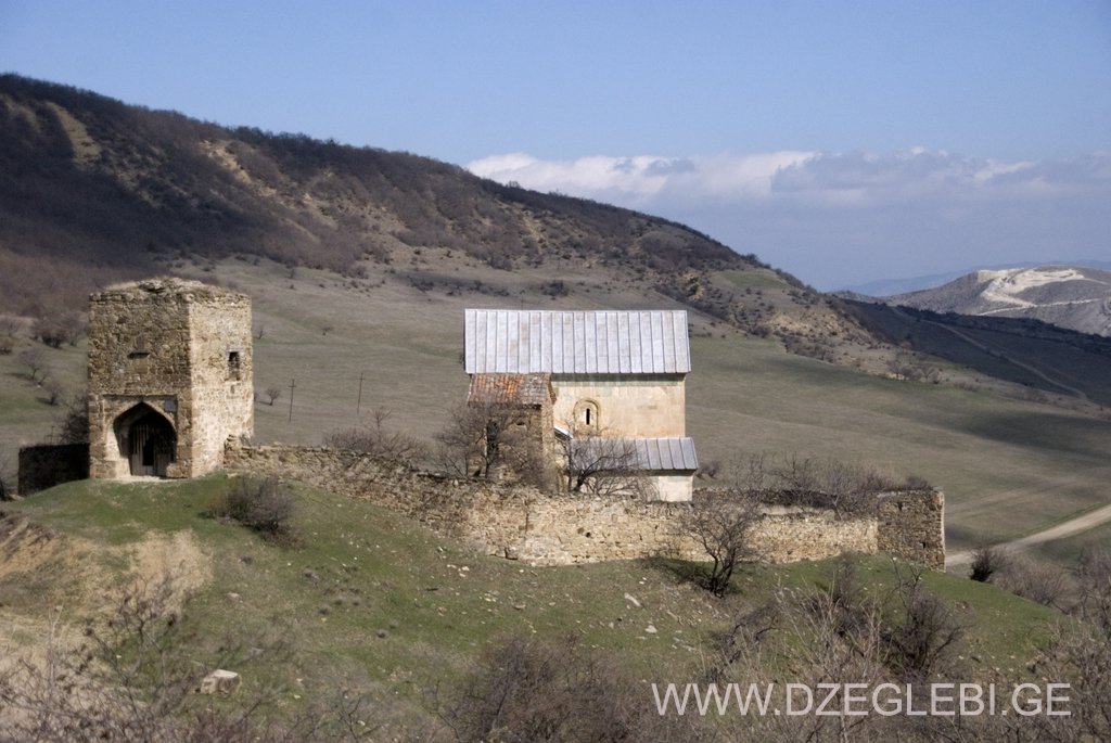 გალავნის შიგნით დგას. იგი ადრე სამრეკლო იყო. პაპუა მაღალაძემ (გარდაიცვალა 1681 წელს) საძვალედ გადააკეთა. თარიღდება XVI-XVII საუკუნეებით. სამრეკლო-საძვალე (3,72X3,7 მ) ორსართულიანია. ყოველი სართული ცილინდრული კამარით გადახურული თითო სათავსისგან შედგება. მეორე სართულის კედლები და ღუმელი მთლიანად შეთეთრებულია. გადაკეთების კვალი ნაგებობას აშკარად ემჩნევა: თავდაპირველად ორივე სართული ყოველ მხარეს ღია ყოფილა. ქვემოთ სამრეკლოს ოთხი ბურჯი და ოთხი ისრული თაღი ჰქონია, ზემოთ – ოთხივე მხარეს ორ-ორი ისრულთაღოვანი მალი. პაპუა მაღალაძემ ყველა მალი ამოაშენებინა. ინტერიერი მოგვიანებით მოუხატავთ. მოხატულობა მიეკუთვნება XVII II ნახევარს. პირველ სართულზე შემონახულია მოხატულობის დაზიანებული ფრაგმენტები. მოხატულობა ხასიათდება შესრულების მანერის სიმშრალით; კოლორიტი მუქი და მღვრიეა (მოვარდისფრო-ყავისფერი, ვარდისფერი, ნაცრისფერი, მონაცრისფრო-თეთრი და მუქი ლურჯი). სამრეკლო თავისი კონსტრუქციით არსებითად განსხვავდება საქართველოში გავრცელრბული ჩვეულებრივი ტიპის სამრეკლოებისგან – მას არა აქვს ზარების ჩამოსაკიდი ფანჩატური.