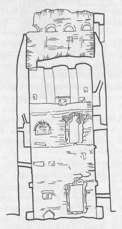 ე) აფთიაქი (3,35X3,2 მ) დგას პაპუა მაღალაძის კოშკის სამხრეთ-დასავლეთით 300 მეტრზე. ამ ადგილს მოსახლეობა საჯინიბოებს და სამტრედოებს უწოდებს. აფთიაქი ნაშენია ნატეხი ქვით, ძლიერ დაზიანებულია. ინტერიერში კედლები დაყოფილია პატარ-პატარა თახჩებად (0,15X0,19, 0,15X0,23 მ). ყველა კედელი, გარდა აღმოსავლეთისა, გარედან მიწაშია მოქცეული (სიგრილის შესანარჩუნებლად).