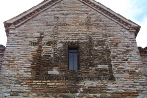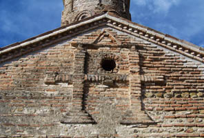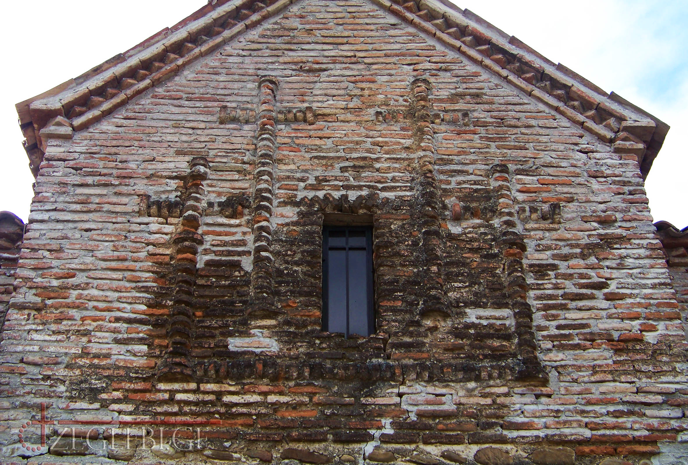 საშენ მასალად აგური და ნატეხი ქვაა გამოყენებული. ალაგ-ალაგ ჩართულია საფლავის ქვებიც. განსაკუთრებული გულმოდგინებთ გუმბათია გაფორმებული – რომბებს ჯვრების მწკრივებით, სარკმლებზე შემოყოლებული ლეკალური აგურის ლილვებით. ფასადებზე გარკვეული სიახლეა: ვხედავთ ახლებური კომპოზიციების შედგების მცდელობას. მაგალითად, მკლავის სარკმლის ორსავ მხარეს ოთხი ჯვრის კომპოზიციაა; დასავლეთით თაღოვანი ელემენტებიც შემოდის. თანაც ეს ფორები ახლებურად, ლეკალური აგურითაა გამოყვანილი და არა ძველებურად – სიბრტყეთა დონის ცვალებადობით. თუმცა ამ უკანასკნელი ხერხით შექმნილი ორი ჯვარი აღმოსავლეთ ფასადზე შეიძლება ვიხილოთ. სახასიათოა საფასადო მხრიდან შესასვლელების პერსპექტიულად ჩაღრმავებულ ორ თაღში მოთავსება. ასეთი ფორმა გვიან შუა საუკუნეების მიწურულის ძეგლებს ახასიათებს.