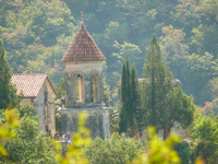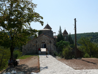 ბ) ეკლესიის სამხრეთით ორსართულიანი სამრეკლოა, რომლის წარწერა გვაუწყებს, რომ იგი აგებულია მიტროპოლიტ დავითის განკარგულებით 1845 წელს. ნაშენებია თლილი ქვით. გ) მონასტრის ტერიტორიაზე შემორჩენილია ’’შიშიანობის’’ დროიდან გადარჩენილი ორი კოშკის ნაშთი. ერთი მათგანი ტაძრიდან სამხრეთ-აღმოსავლეთითაა, ხოლო მეორე - ჩრდილო-აღმოსავლეთით. 1884 წლის ამ კოშკების აღწერილობაში ჩანს, რომ მათ კედლებში ყოფილა ვიწრო სანათურები და სათოფურები. ჩრდილო-აღმოსავლეთის კოშკში გამართული იყო სანახები, სადაც ინახებოდა მონასტრის ძვირფასი ნივთები ( ჟურნალი ’’მწყემსი’’, 1884 წ, #11). დ) მონასტერი ქვის გალავნით არის შემოსაზღვრული. მის ეზოში დასაფლავებული დაკრძალული არიან XIX-XX საუკუნეში მოღვაწე სასულიერო პირები. ე) ტაძრის დასავლეთ მხარეს ძველი ეკლესიის ნანგრევებზე აშენებულია წაგრძელებული ფორმის წინამძღვრის სახლი (მოსაცდელი)