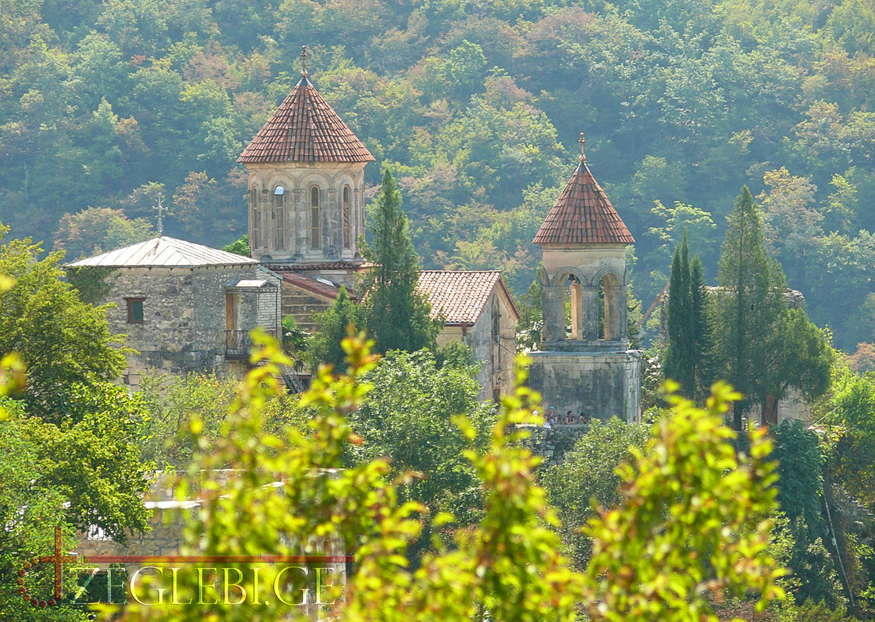 ეკლესია, სამრეკლო, ორი კოშკი, გალავანი და წინამძღვრის სახლი.