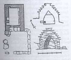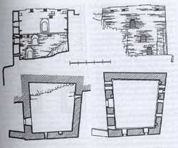 ა) დარბაზი გეგმით სწორკუთხაა. შესასვლელი სამხრეთ-დასავლეთიდან აქვს. კარი ოთკუთხაა - ნაოთხალებიანი. კარის წინ პატარა კარიბჭეა, რომელიც ორი მხრიდან კედლითაა შემოზღუდული, ხოლო ცალ მხარეს ერთიანი ცალ მხარეს ერთიანი კალისებრი თაღითაა გახსნილი. ანალოგიური ფორმა აქვს დარბაზის კამარასაც. კამარა გრძივ კედლებს კი არ ეყრდნობა, არამედ იატაკიდან იწყება. ჩრდილო-აღმოსავლეთით და ჩრდილო-დასავლეთით კედლებში ნიშებია, სამხრეთ-აღმოსავლეთის კედელს, იატაკიდან 0.5 მ სიმაღლეზე, 25 სმ სიგანის ფიქლის თარო გასდევს. დარბაზი დასრულებულია საფეხურებიანი სახურავით (სიპედი), რომელსაც ერთ მხარეს შვიდი საფეხური აქვს, მეორე მხარეს - ხუთი.