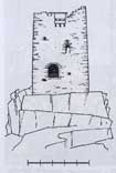 ბ) ციხე-სახლი (6.4ხ6.25 მ) სამსართულიანია. შესასვლელი I სართულზეა, სამხრეთ-აღმოსავლეთიდან. კარი გადახურულია ნახევარწრიული თაღით, წირთხლებში საურდულე ხვრელებია. დასავლეთით ერთი თაღოვანი სარკმელია. II სართულს სამხრეთ-აღმოსავლეთით ერთი თაღოვანი სარკმელი და ორი სათოფური აქვს. აღმოსავლეთით გაჭრილი კარი კოშკის II სართულზე გადის. ჩრდილოეთით ორი ნიშია, დასავლეთით - თაღოვანი სარკმელი და სწორკუთხა ნიში. III სართულზე ჩრდილო-აღმოსავლეთით თაღოვანი კარი და ერთი პატარა ნიშია, სამხრეთ-აღმოსავლეთით - სათოფური და ნიში, დასავლეთით - თაღოვანი სარკმელი და ნიში. შემორჩენილია სართულშუა გადახურვის ხის კოჭების ბუდეები. სახურავი მიწურბანიანი ყოფილა. I სართული საქონლის სადგომი იყო, II - საცხოვრებელი, III - სათავდაცვო.