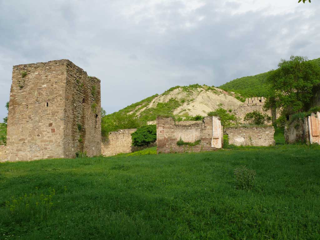 კოშკებიანი გალავანი, სასახლე, ეკლესია და აბანო.