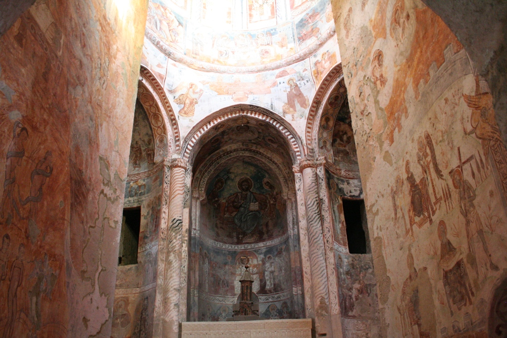 ტაძარში სივრცე შესამჩნევად დაგრძელებულია, რასაც საკურთხევლის აფსიდის ბემა და და დასავლეთის შედარებით დაგრძელებული მკლავი განაპირობებს, თუმცა ინტერიერი ფართო და კარგად განათებულია. ტაძარი მთლიანად არის მოხატული. მხატვრობა XVII საუკუნეს განეკუთვნება. ტაძრის ფასადებს, რომელიც კარგად გათლილი ქვითაა შემოსილი, უწყვეტი თაღედი შემოუყვება გარშემო. უხვად არის შემკული მდიდრული ჩუქურთმებით და მრავალფიგურიანი რელიეფური კომპოზიციებით (“ფერისცვალება”, “ჯვრის ამაღლება”...), ასევე გვხვდება წმინდანთა ფიგურები და რეალურ და ფანტასტიკურ ცხოველთა გამოსახულებანი. მოჩუქურთმებულია ტაძრის სარკმლებიც. რელიეფური კომპოზიციები გვხვდება ასევე შესასვლელი კარის ტიმპანზეც. ტაძარს სამხრეთის და დასავლეთის კარიბჭეები მოგვიანებით (თუმცა იმავე XI საუკუნის I ნახ-ში) მიუშენეს.