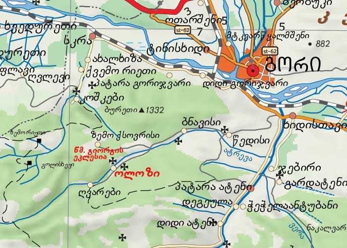 ოლოზის წმ. გიორგის ეკლესია სამთავისისა და გორის ეპარქიის დაქვემდებარებაშია.