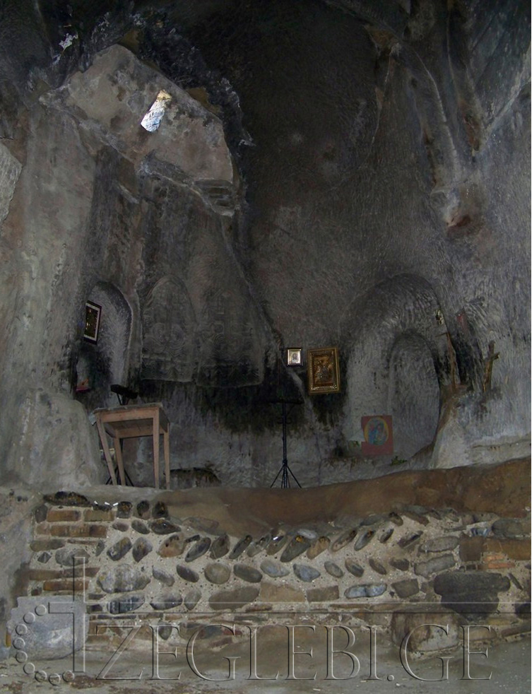 ბ) კორიდორები. სამრეკლო უკავშირდება ბნელ კორიდორს (სიგრძე 19 მ, სიგანე 2 მ, სიმაღლე 2,5 მ), რომლის ღერძი ჩრდილოეთიდან სამხრეთისკენაა მიმართული. კორიდორის აღმოსავლეთ კედლის ცენტრში გაჭრილია ეკლესიის შესასვლელი. ამ შესასვლელის მოპირდაპირე მხარეს გამოკვეთილია რამოდენიმე საფეხურით ამაღლებული ერდოიანი სადგომი, რომელიც უკავშირდება ღია კორიდორს (III). I კორიდორის ბოლოს, მარცხნივ, მიემართება II კორიდორი, რომელიც უკავშირდება დამხმარე სადგომს. III კორიდორი დანარჩენ კორიდორებს უერთდება მათი გადაკვეთის ადგილთან (ამჟამად ამოქოლილია). გ) კვირაცხოვლის სახელობის ეკლესია კომპლექსის სხვა სადგომებთან შედარებით უფრო დიდია (10X4,5 მ, სიმაღლე 7,6 მ). მას ორი სწორკუთხა კარი აქვს. ერთი, ფართო კარი, გაჭრილია ჩრდილოეთ კედლის შუა ნიშში და წარმოადგენს დარბაზის განათების ძირითად წყაროს. მეორე სამხრეთ კედლის აღმოსავლეთ მონაკვეთშია. ეს კარი II კორიდორში გადის. ეკლესიას აღმოსავლეთით ნახევარწრიული აფსიდი აქვს. საკურთხეველი დარბაზის იატაკის დონიდან 1 მეტრითაა შემაღლებული. საკურთხეველში ორი თაღოვანი ნიშია. უფრო ფართო სამხრეთის ნიშში გაჭრილია დამხმარე სადგომში ჩასასვლელი ვიწრო თაღოვანი გასასვლელი. საკურთხევლის კონქის ჩრდილოეთ ნაწილში პატარა სწორკუთხა სარკმელია. ამ ადგილას კლდის მასივი გახსნილია და ქვის წყობითაა დასრულებული. საკურთხეველი კანკელით ყოფილა გამოყოფილი, რომლის კლდეში ნაკვეთი მცირე ნაწილები შემორჩენილია აფსიდის გვერდებთან. ეკლესიის კედლები დანაწევრებულია თაღოვანი ნიშებით, რომლებიც იატაკიდან 4,5 მეტრის სიმაღლეზე იწყება. გრძივ კედლებზე თაღოვანი სარკმლის ქვეშ ერთმანეთთან სიმეტრიულად ამოკვეთილია სამ-სამი ბუდეც, რომლებსაც ხარაჩოების გასამართავად იყენებდნენ. დ) დამხმარე სადგომი სწორკუთხაა. მის ცენტრში მოწყობილია პატარა საკურთხეველი. სადგომის გადახურვა ბრტყელია. ეკლესიის შესასვლელის პირდაპირ გამოკვეთილია თითქმის წრიული მოხაზულობის ერდოიანი სადგომი. სადგომის კედელზე ამოკვეთილია რამდენიმე ნიში, დასავლეთის ნაწილში ღია კორიდორში (III) გასასვლელი სწორკუთხა კარია. სადგომო გადახურულია გუმბათოვანი კამარით. კამარა რთული მოხაზულობისაა და წვერში ოვალური ხვრელობი (ერდო) აქვს. ერდოიანი სადგომის ახლოს, მის დასავლეთით, კიდევ ერთი ერდოიანი სადგომის გამოკვეთა დაუწყიათ (არ არის დამთავრებული).