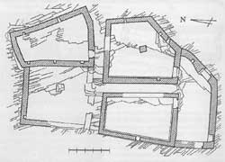 გ) კომპლექსის ჩრდილოეთ ნაწილში მდგარი შეწყვილებული ციხე-სახლის აღმოსავლეთ ნაწილისგან ორი სართულიღაა შემორჩენილი. იგი გეგმით ტრაპეციულია (10x5.5 მ). სართულშუა გადახურვა და სახურავი აქაც ხის კოჭებზე იყო გამართული. I და II სართულებზე, გარდა სამხრეთ კედელში გაჭრილი შესასვლელებისა, რამდენიმე სარკმელი, ნიში და სათოფურია. დ) ორი სართული შემორჩენილი ციხე-სახლისდასავლეთ ნაწილისგანაც (8.7X7.1 მ). შესასვლელი ორივე სართულს სამხრეთიდან აქვს. კედლებში რამდენიმე ნიში, სარკმელი და სათოფურია. ნაგებობის შუაში ქვის მასიური სვეტის ნაწილია შემორჩენილი. ე) კომპლექსის სამხრეთ კიდეში მდგომ ციხე-სახლებზე სტრატეგიული მიზნით მიშენებულია სამსართულიანი ნაგებობა (სიმ. 9.5 მ), რომელიც რელიეფს მიჰყვება. შესასვლელი აღმოსავლეთ კედელშია მიწიდან 3.25 მ სიაღლეზე. კედლებში რამდენიმე ნიში, სარკმელი და სათოფურია. სართულშუა გადახურვა და სახურავი ხის კოჭებზე იყო გამართული. ამ ნაგებობის მიშენებამდე ციხე-სახლების ქვედა სართულს საქონლის სადგომად იყენებდნენ. მას შემდეგ რაც სამხრეთ მისადგომი ჩაიკეტა, ნაგებობები მხოლოდ თავშესაფრის ფუნქციას ასრულებდა.
